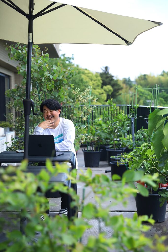 “The joy of living here comes from the rich natural environment and my home garden.” Aoki utilizes his spacious balcony to grow various plants, including baby leaves, rosemary, tomatoes, lettuce, citrus, watermelon, and Delaware grapes. Interacting with these plants helps him chill out.