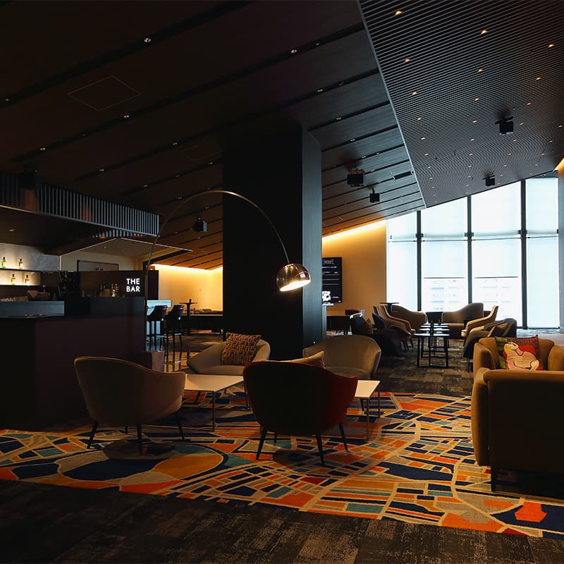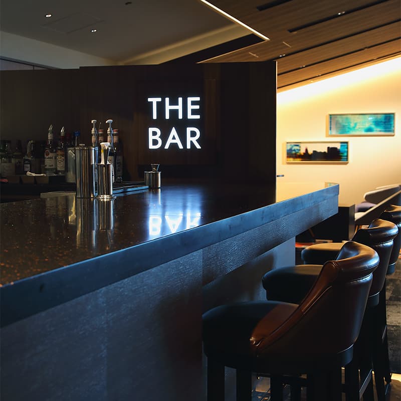 この価格はロビーに足を踏み入れた途端、納得に変わる。そこはまるでシティホテルのよう。著名な作家によるアートや家具が置かれ、壁面のサイネージにはプロジェクションマッピング国際大会グランプリ受賞アーティストの作品が映しだされている。ゆったりとした時間が流れるなか、バーでお酒のオーダーもできる、まさに大人のための空間だ。
