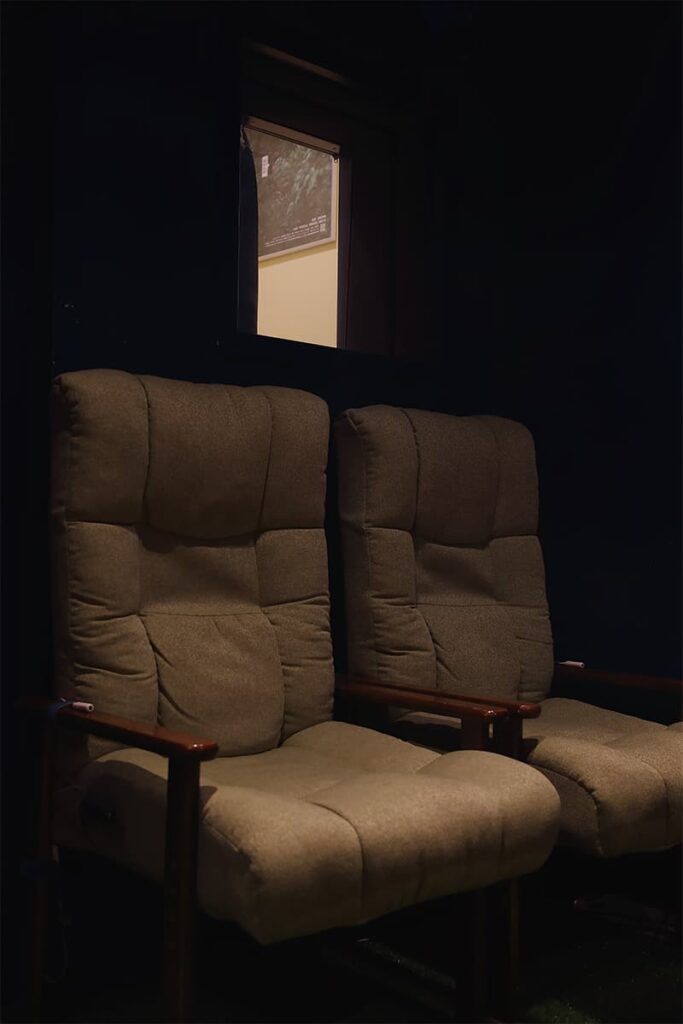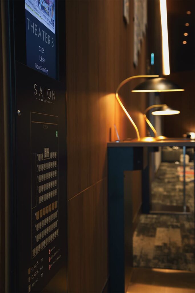 Entering the theater as the screening time neared, I momentarily felt as if my ears were blocked. “Surprised? It’s designed to be that quiet,” says Koga. In this stillness, your ears pick up every subtle sound. One guest noted, “I heard sounds I never noticed before in a movie I’ve watched many times in other theaters.” Every theater here features sound systems supervised by Ryuichi Sakamoto, known as SAION -SR EDITION-, delivering professional-grade acoustics. “Even the beautiful music in the lounge is composed by Sakamoto. It helps clear your ears so you can better enjoy the film.” This is the level of thought that went into the acoustics.