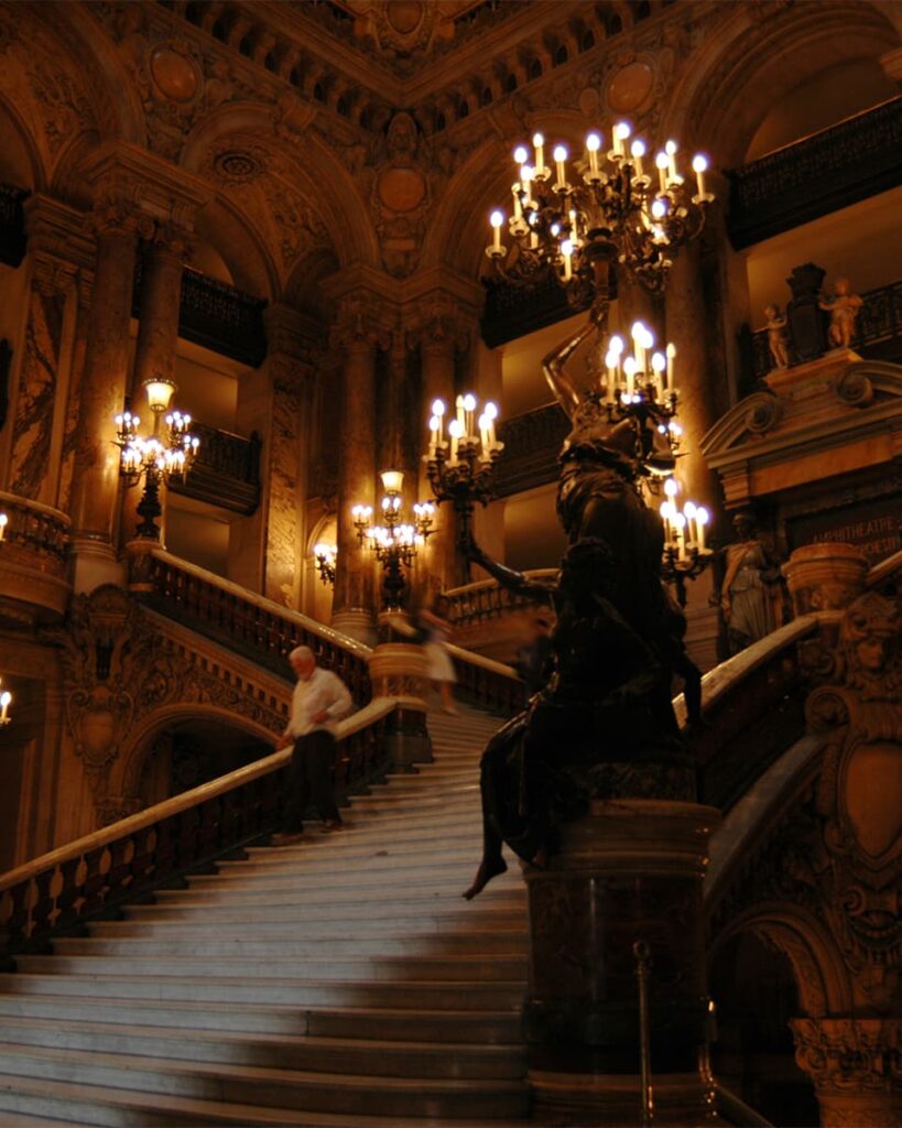 d. パリオペラ座ホワイエ天井シャンデリア装飾が美しい。