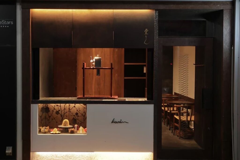 Kurin is a Japanese chestnut Mont Blanc specialty shop that lets you enjoy Mont Blanc with all five senses. The shop pays attention not only to taste aspects like texture and smell, but also to ambient sounds so customers can relish their Mont Blanc like never before. Featuring two types of top-quality Japanese chestnuts, the Golden Mont Blanc and other beautiful Mont Blanc creations are carefully made right before your eyes, offering the rich aroma and flavor of Japanese chestnuts.