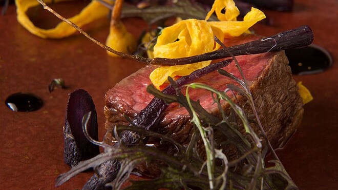 In this quaint restaurant tucked away in a residential area of Hakomatsu, Chef Tsujitsuka sources choice ingredients from his hometown, Shikanoshima, and uses liquid nitrogen and modern equipment to create inventive dishes with novel flavors and textures. Served on delicate Ueno ware that enhances flavor, the dishes are visually stunning. Please savor the chef ‘s meticulously crafted creations.