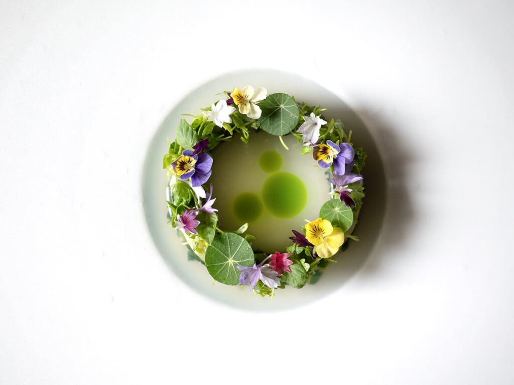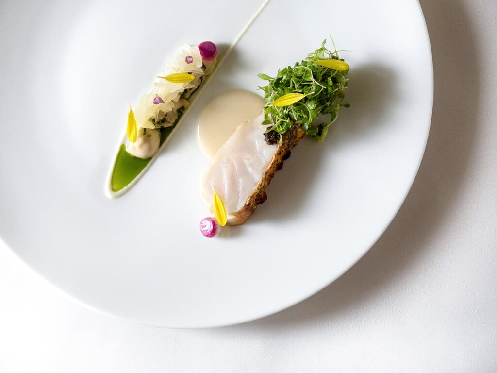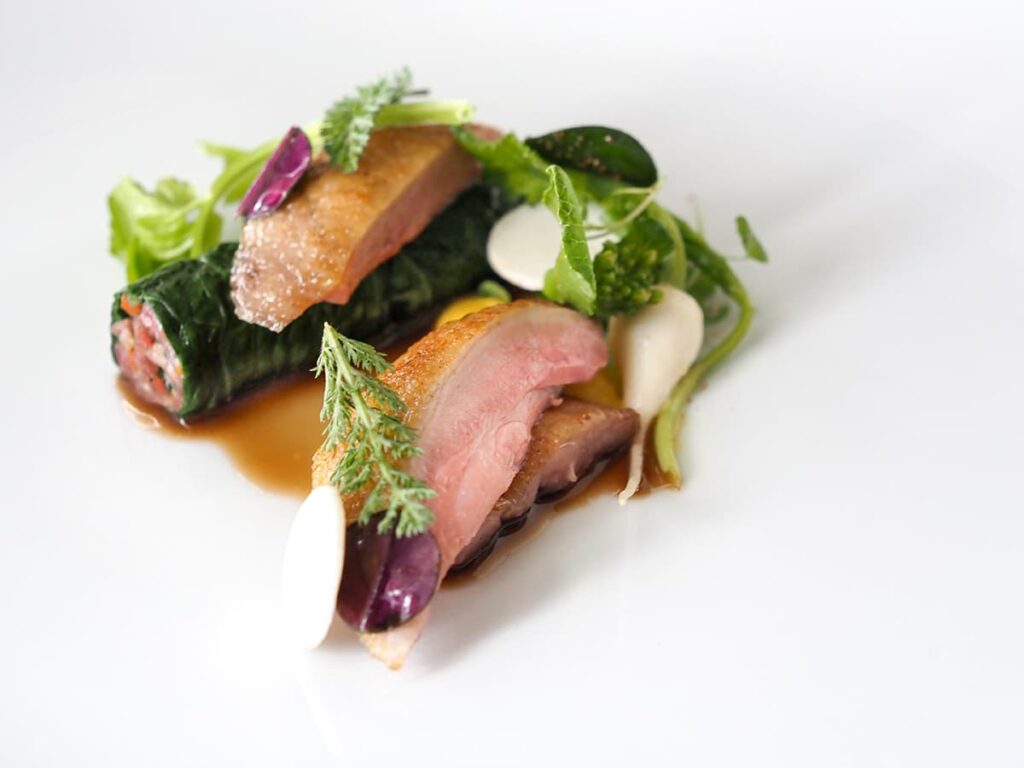 西中州の一角、大人向けの名店が集まるエリアに店を構えるフレンチ【レストランアレナ】。お任せコースのメニュー表には1皿ごとのタイトルと使用する食材のみが記され、期待感が高まります。パリやブルゴーニュの星付きレストランで経験を積んだオーナーシェフ・有馬氏のテーマに合わせ、旬の食材を取り交ぜながら提供されるイマジネーション豊かな料理は、真っ白な空間に描かれるアートのような美食体験を提供します。
