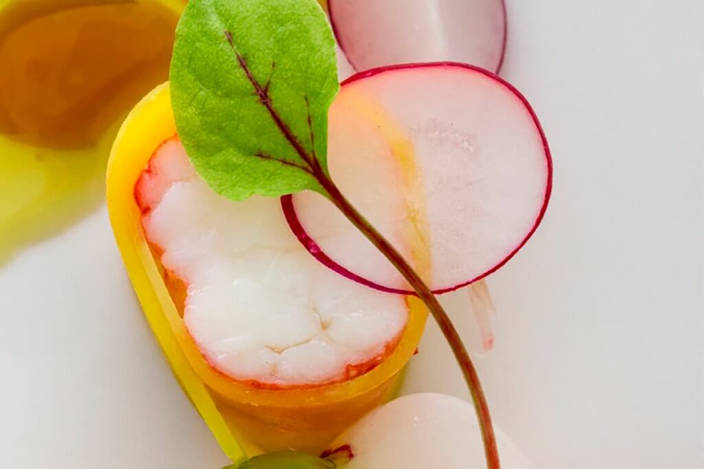 本場パリでオープンしたレストランを一年程でミシュラン一つ星に導いた今注目のシェフ・吉武氏が『食を通して日々をもっと楽しく』をテーマにオープンした同店。店内の大きな窓から海に寄り添う福岡・博多の夜景を存分に感じながらオープンキッチンから提供される躍動感ある料理の数々は、高級食材ではなく敢えて手に入りやすい食材を使い、技術や発想がないと不可能な料理に昇華。品格の中にも肩ひじ張らずに楽しめる朗らかさがあります。