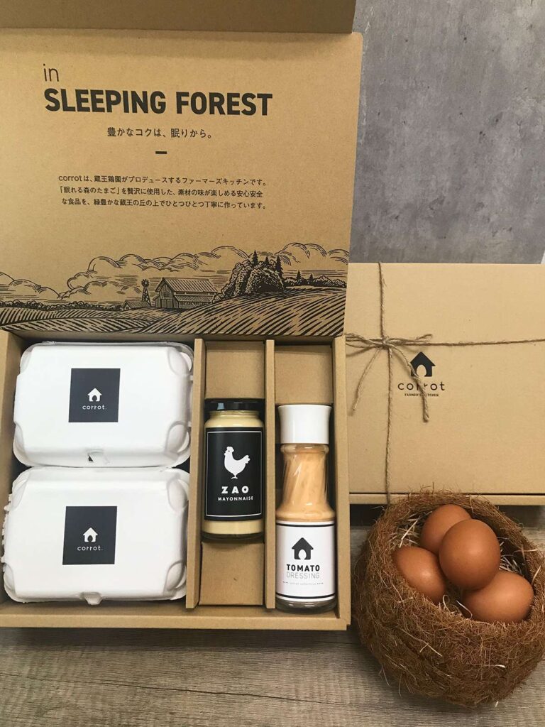 蔵王鶏園は宮城県の外れにある緑豊かな田舎町、蔵王町で創業65年を迎える養鶏場。鶏は一日の約半分をしっかりと休眠させて産卵数を減らすことで鶏のストレスを減らし、すべての鶏が幸せに暮らせる飼育体制を整えています。その結果、一つ一つに栄養が濃縮された濃厚で香り高い卵の味に到達することが出来ました。この味を多くの人に知ってもらうべく令和のはじめとともにcafe corrot.もスタート。現在ではメルカリでの販売実績が約5千件に到達している他、ふるさと納税にて卵やギフトセットの全国発送も行っています。